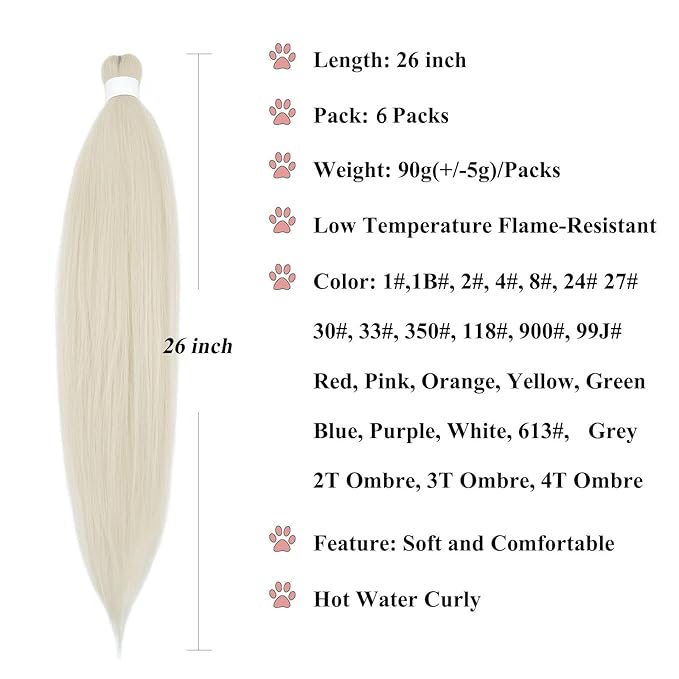 - Ai Yuchen 613 Blonde Spectra Braiding Hair Pre Stretched Made with Pre-Stretched Low Temperature Synthetic Fiber Hair for Braiding is Very Easy to Braid, Spectra Pre Stretched Braiding Hair Hot Water Setting & Curled are Workable. Amazing Fake Colored Hair Extensions for Braiding, No Discoloration, No Itch, No Knots.