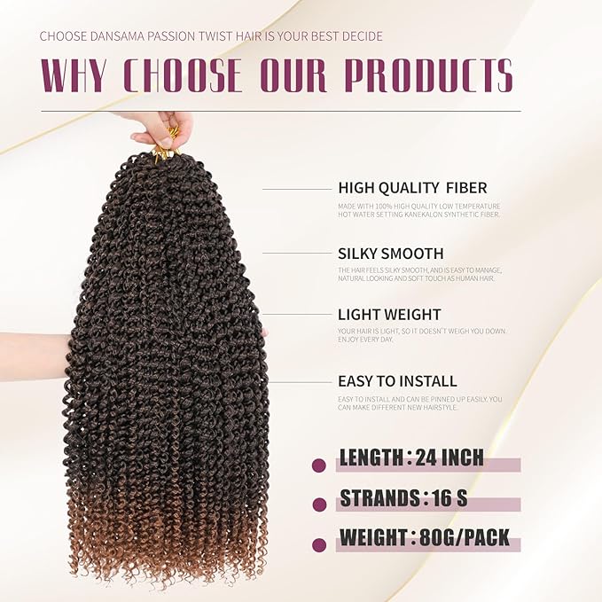 - 【Package Included】: 6 packs 24 inch Water Wave Passion Twist Hair + 1 crochet needle.