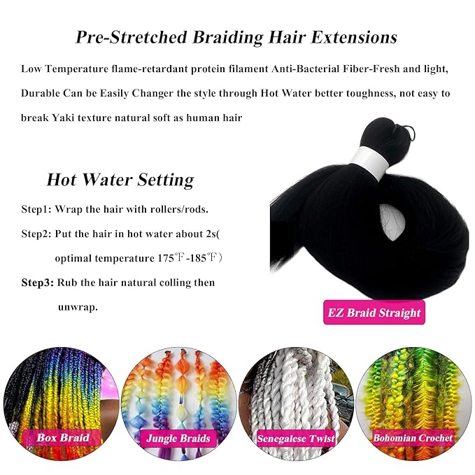 - Ai Yuchen Black 1b Braiding Hair Pre Stretched Made with Low Temperature Synthetic Fiber Hair for Braiding is Very Easy to Braid, Spectra Pre Stretched Braiding Hair Hot Water Setting & Curled are Workable. Amazing Braiding Hair for Micro Braids, No Discoloration, No Itch, No Knots.