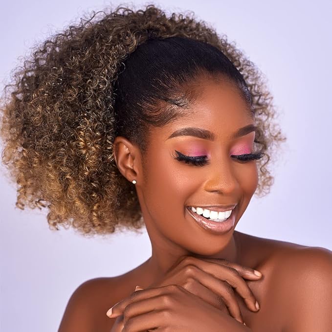 Afro Puff kinky curly Drawstring Ponytail Extension for Black Women Synthetic Short Afro Kinkys Curly Afro Bun Extension Hairpieces Updo Hair Extensions with Two Clips(T27#)
