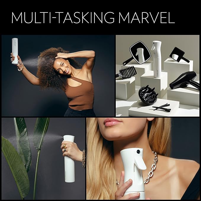 - MULTI-TASKING MARVEL: Countless uses in and out of the home. The mister spray bottle with an ultra-fine mist sprayer is ideal for professional salon use or your everyday hair and body care routine. Plus, this continuous mist spray bottle is also great for self-tanning, home cleaning, disinfecting, pet grooming, plant care, car care, arts & crafts, and much more!