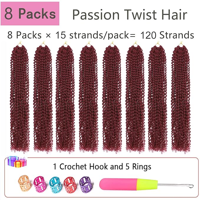 Passion Twist Hair Burgundy Red 24 Inch 8 Packs Passion Twist Crochet Hair For Women Passion Twists Braiding Hair Long Bohemian Spring Twist Hair Crochet Braids Synthetic Hair Extension (24 Inch, BG#)