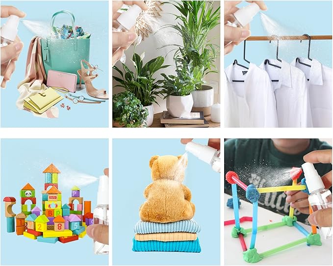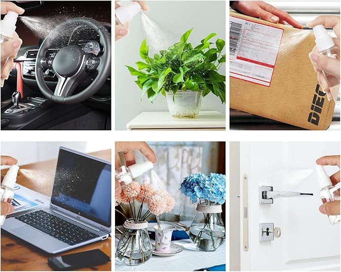 - Widely Use - Our 1 oz spray bottles are very suitable for travel, vacation, camping, daily hand and household cleaning. And it can hold various types of liquids, such as perfume, essential, alcohol, disinfectant, skin lotion, air freshener, flower lotion, etc.