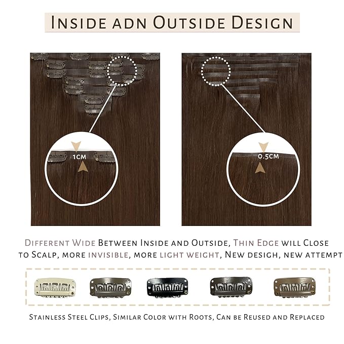 - ღ【Real Hair Extensions Clip in Human Hair】—We adopt real remy human hair with advanced sewing technology. Silky salon professional hair extensions like your own natural hair, no shedding, no tangling. Our seamless clip in hair extensions can be restyled, strengthened, curled, dyed.