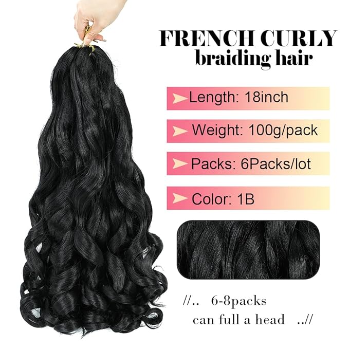 - 【Hair information】: French Curly Braiding Hair 18inch,Color:Black,Weight:100g/Pack. Package: 6Pack/lot.