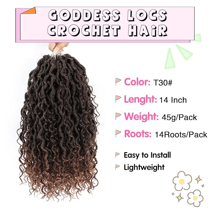 - ☎1. 【Material】: Goddess Locs Crochet Hair is Made by 100% High Quality Synthetic Fiber, Crochet Goddess Locs with Deep Curly in Middle and Ends.