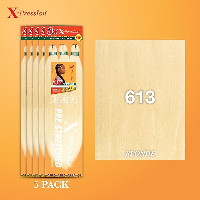 Sensationnel X-pression prestretched braiding hair - 3x braid 58 inch all kanekalon flame retardant synthetic braid for box braids and twists (5 pack, 613 BLONDE)