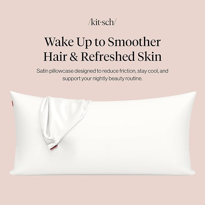 Kitsch Satin Pillowcase with Zipper for Hair & Skin, Softer Than Silk Pillow Cases Queen, Wrinkle-Free, Smooth and Cooling Satin Pillow Covers, King Size 19"x36" - Ivory, 2pcs
