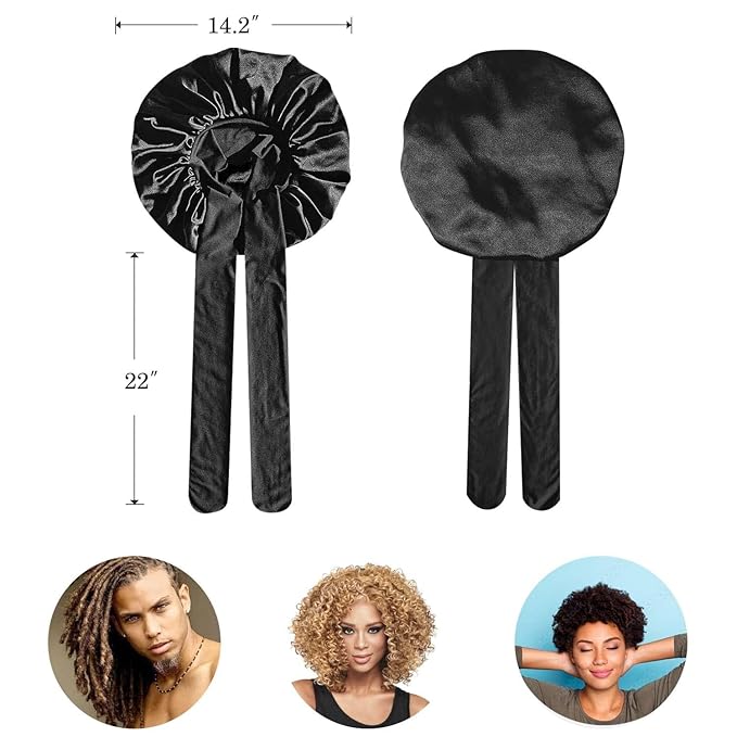 - Quality material: Bonnet part is made of good texture silky satin, which is breathable and smoothy, and can keep hair moisture too. Long band is made of stretchy spandex material, comparing common elastic band Bonnet, this Bonnet wouldnot make you feel tight and leave imprint on head, and much more cosy.
