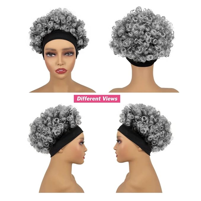 Afro Wigs for Black Women Glueless,Short Kinky Curly Wig with headbands attached Synthetic with 2 Clips(Tgray)