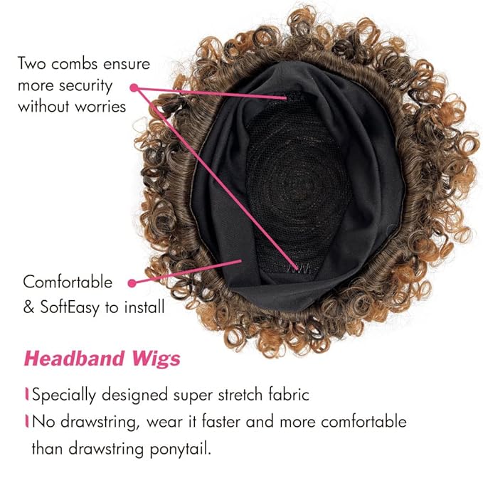- [Creative design]: This short afro headband wig is an innovative design,This is designed for fashion conscious women who don't have time to get their hair done. This wig has a very elastic black hair band (which itself can ensure the safety of the wig)It is not only fashionable and natural, but also very very easy to wear. Ladies,It's a great solution for you who don't have much time to take care of your hair.