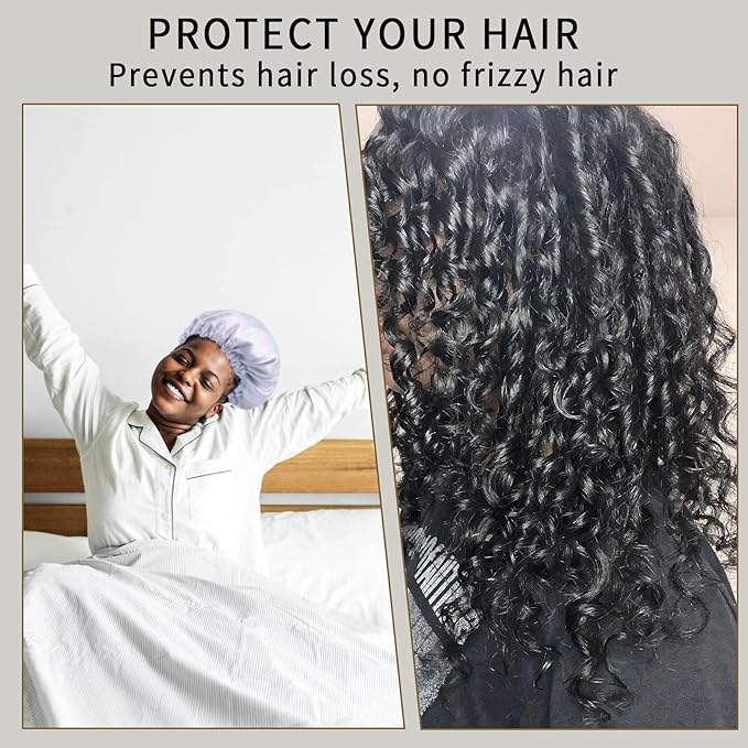 - MULTIFUNCTIONAL SILK BONNET: This sleeping cap is not only suitable for sleeping, but you can also wear it to to help keep hair out of your face during makeup removal, taking a bath, or even while doing housework. This is a great bonnets for women and can be used as a Ideal gift choice for ladies on Valentine, Christmas Days.
