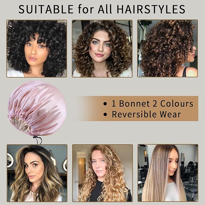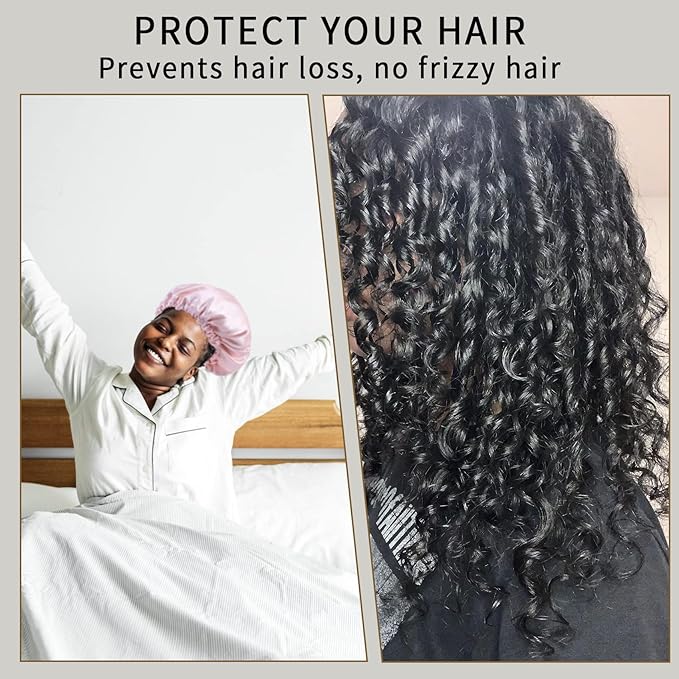 - MULTIFUNCTIONAL SILK BONNET: This sleeping cap is not only suitable for sleeping, but you can also wear it to to help keep hair out of your face during makeup removal, taking a bath, or even while doing housework. This is a great bonnets for women and can be used as a Ideal gift choice for ladies on Valentine, Christmas Days.