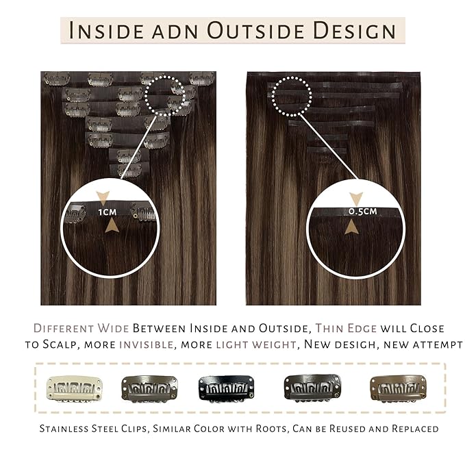 - ღ【Real Hair Extensions Clip in Human Hair】—We adopt real remy human hair with advanced sewing technology. Silky salon professional hair extensions like your own natural hair, no shedding, no tangling. Our seamless clip in hair extensions can be restyled, strengthened, curled, dyed.