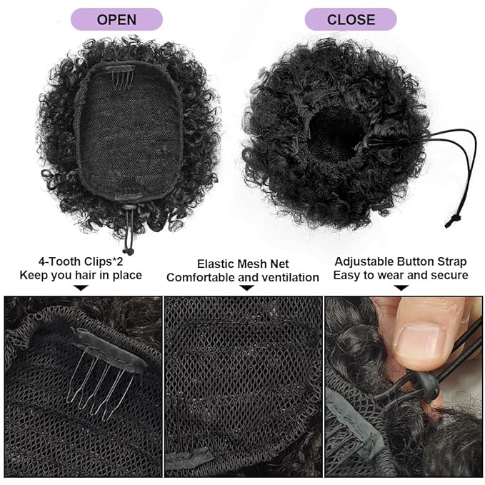- 🎀【NO TIME TO DO YOU HAIR?】Afro ponytail for black women is perfect for those who do not like spending a lot of time styling their hair in the morning. Afro puff drawstring ponytail has an elastic retractable rope. Just put your own hair into a ponytail, attach the hair puffs for black women with drawstring and combs and go!