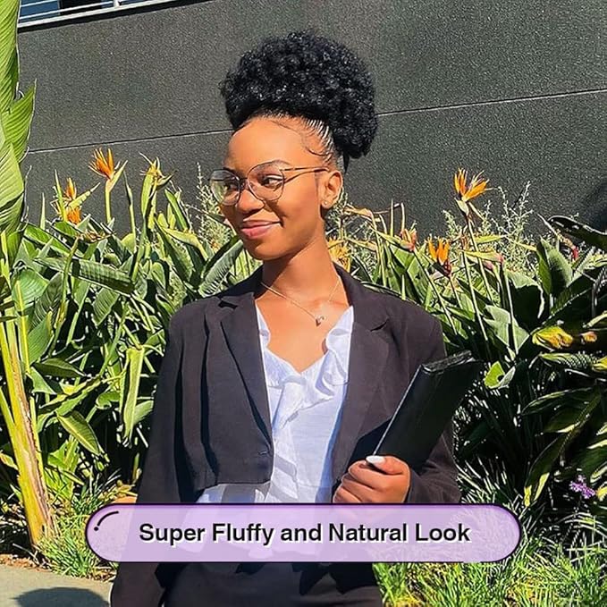 - 🎀【PREMIUM SYNTHETIC HAIR SUPER SOFT】Premium quality Afro puff drawstring ponytail are made of heat resistant synthetic fiber. Hair puffs for black women are super soft and smooth. Afro ponytail for black women can be used for a long time and repeatedly. Easy to attach and blends well Afro ponytail for black women, nobody will find your secret.