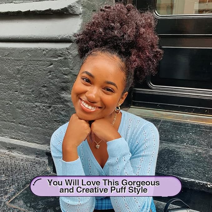 - 🎀【NO TIME TO DO YOU HAIR?】Ombre burgundy Afro ponytail for black women is perfect for those who do not like spending a lot of time styling their hair in the morning. Afro puff drawstring ponytail has an elastic retractable rope. Just put your own hair into a ponytail, attach the hair puffs for black women with drawstring and combs and go!