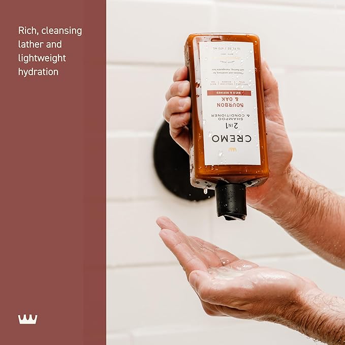 Cremo Bourbon & Oak 2-in-1 Shampoo & Conditioner, Barber Grade Quality That Moisturizes and Cleanses All Hair Types, 16 Fluid Ounce