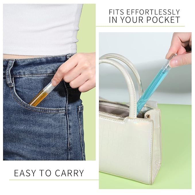 - Compact to Carry and Travel: Empty perfume bottles are so compact and portable, suitable as travel spray bottle and daily carry out. Perfume sample bottles easily fit in your purse or pocket, handbag, makeup bag. When you're stuck on which perfume to take out, why not take them all with you in small spray bottles. Mini size doesn't take up much space