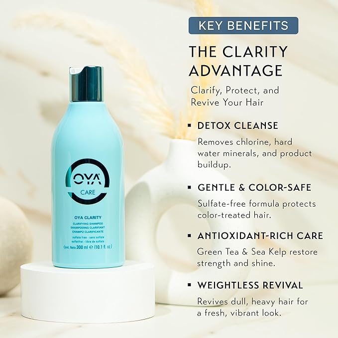 OYA CLARITY Clarifying Shampoo - Sulfate Free Deep Cleanser for Oily Hair & Scalp - Gentle Anti-Residue Shampoo with Amino Acids, Sea Kelp & Green Tea Essentials for Curly, Color Treated Hair - 300ml