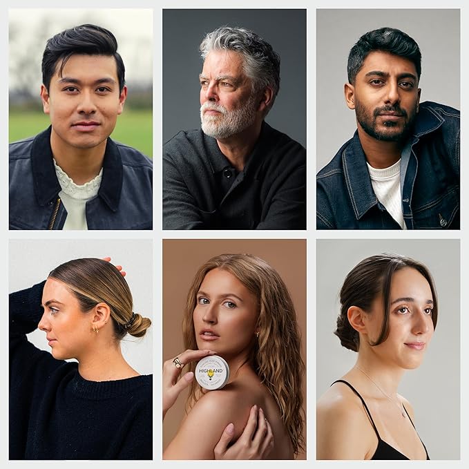 Highland Glacial Hair Clay Pomade - Award winning hair styling clay for men and women made with 100% all natural and organic ingredients that promote hair and scalp health. Low shine, Medium Hold.