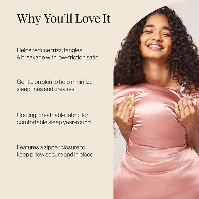 - LUXURY SATIN PILLOWCASE FOR HAIR & SKIN – Wake up to smoother hair and glowing skin with our bestselling satin pillowcase. Designed to reduce frizz, tangles, and breakage by creating less friction than cotton pillow cases, while helping prevent sleep lines and facial creases.