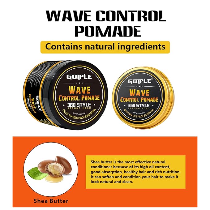 - 【GREAT FOR ALL STAGES】Our hair pomade for men is easy to spread by beginning and experienced wavers alike, Goiple waves pomade is a must-have addition to your 360 wave essentials. Tame your crown while adding amazing definition and sheen.