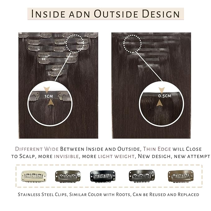 - ღ【Real Hair Extensions Clip in Human Hair】—We adopt real remy human hair with advanced sewing technology. Silky salon professional hair extensions like your own natural hair, no shedding, no tangling. Our seamless clip in hair extensions can be restyled, strengthened, curled, dyed.