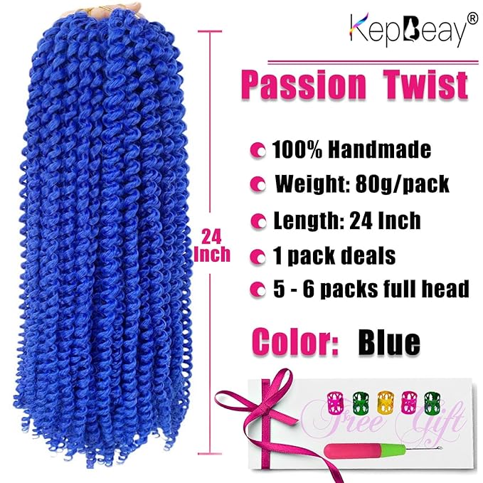 24Inch Passion twist hair 1Pack Passion Twist Crochet Hair Water Wave Crochet Hair for Black Women (24 Inch (Pack of 1), Blue)