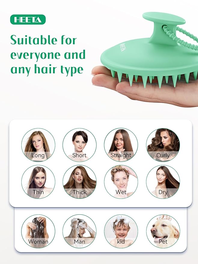- Deep Cleansing & Exfoliation: HEETA scalp brush provide a thorough cleanse, regular use can address itchiness and dandruff concerns by aiding in the removal of flakes and balancing scalp oil production for a more comfortable and healthier scalp