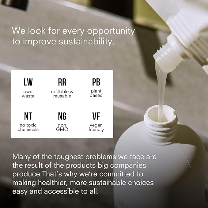 - Less Waste - Designed with sustainability in mind, our 34 ounce conditioner is ideal for refilling our 12 ounce bottle or one of your own.