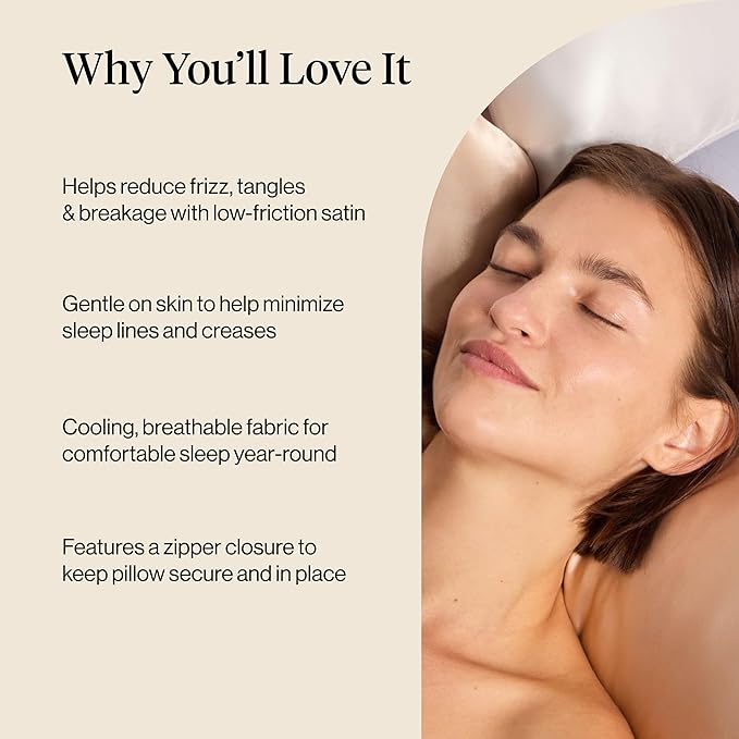 - LUXURY SATIN PILLOWCASE FOR HAIR & SKIN – Wake up to smoother hair and glowing skin with our bestselling satin pillowcase. Designed to reduce frizz, tangles, and breakage by creating less friction than cotton pillow cases, while helping prevent sleep lines and facial creases.