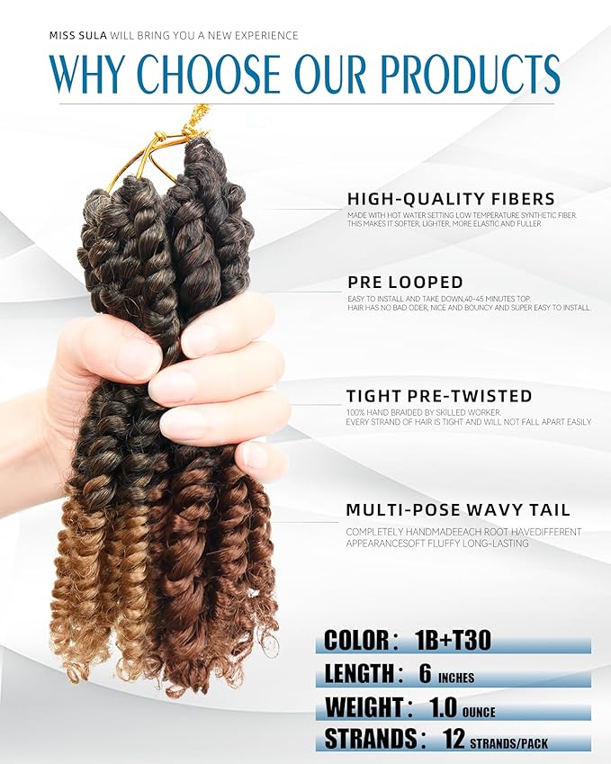 - ★4.【Comb Package Included】8 packs(6 packs 1B+1 pack T1B/27+1 pack T1B/30) 6 inch Miss Sula Pre-twisted Passion Twist Hair+1 Crochet Needle +100 Rubber Brands +5 Colorful Hairpin+10 Colorful Hair Accessories.