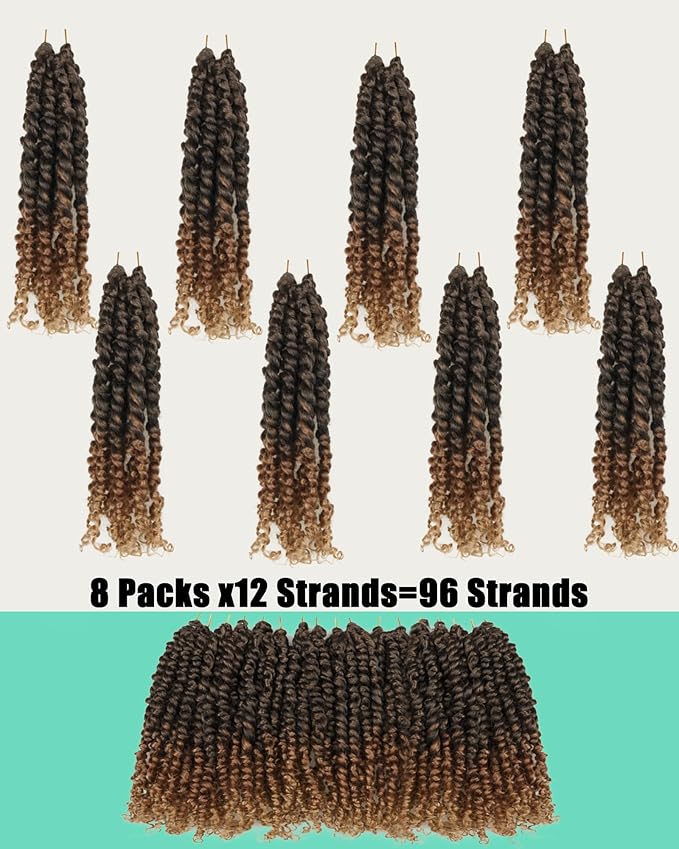 - ★3.【Hair Detail】:Passion Twist Hair Specification: 8 packs a deal ,12 strands/ pack, 96 strands in total, usually 7-9 packs can full a head. 5 size (6 inch, 8 inch, 10 inch, 12 inch, 14 inch);13 colors available ( 1B, #2, #4, #27, #30,350#,BUG#,613#, T27,T30, TBUG, T350,TGray/613)