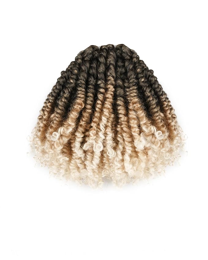 6 Inches 8 Packs Super Short Passion Twist Crochet Hair for Black Women and Kids-3 Tones Ombre Gray to Blonde to Off-white, Pre Looped Pretwisted Crochet Hair Extension (6"-8 Packs,Gray/27/613)