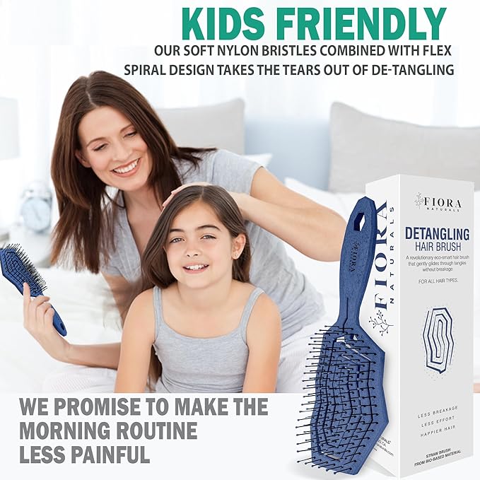 - GENTLE FAMILY DETANGLER BRUSH -Designed for the whole family, this detangle brush makes hair care simple and pain-free for women, men, kids, and seniors alike. The flexible spiral bristle system effortlessly untangles hair, taking the tears out of detangling for children and toddlers while also offering gentle scalp care for the elderly. Ultra-soft nylon bristles distribute natural oils for smoother, shinier strands, making it the perfect everyday brush for every hair type and every age