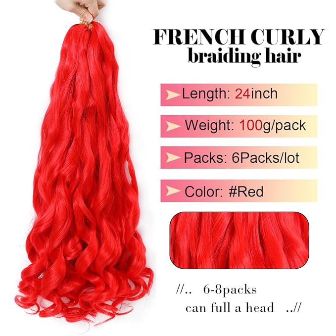 - 【Hair information】: French Curly Braiding Hair 24inch,Color:Red,Weight:100g/Pack. Package: 6Pack/lot.