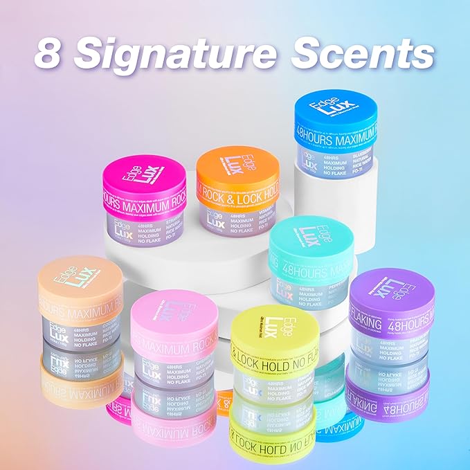 Edge Lux Edge Control Gel with Castor Oil, Keratin, Biotin, and Olive Oil - 48 Hour Maximum Hold, Non-Flaking, Non-Greasy, Scented, Conditioning Styling Gel for All Hair Types