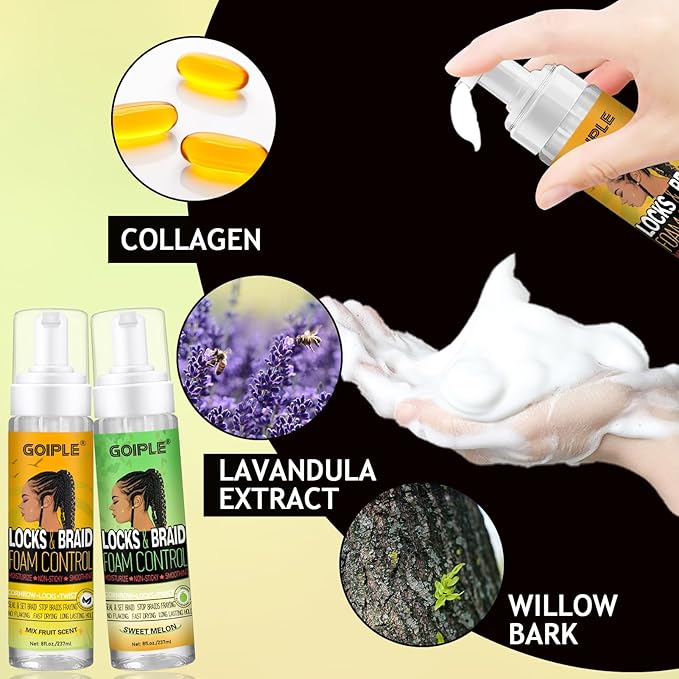 Goiple Hair Mousse for Braids, Twist, Locs - Braid Foam Control Mousse, No Flake, High Shine Style and Moisturizes, Lightweight Easy to Apply 16 fl oz (2pcs)