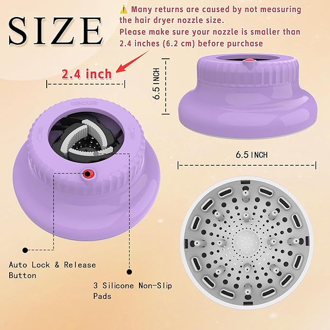 - The Ligolig Diffuser hair dryer is thoughtfully designed with lock button, can be adjusted and fit 99% hair dryers on the market for hair dryer with nozzle diameter of 1.4 inch - 2.4 inch. This hair diffuser compatibilityamplify the natural beauty of your curls, giving them definition and bounce. Whether you have wavy, curly, or coiled hair, our diffuser attachment for hair dryer are the ultimate tool to achieve your desired look.
