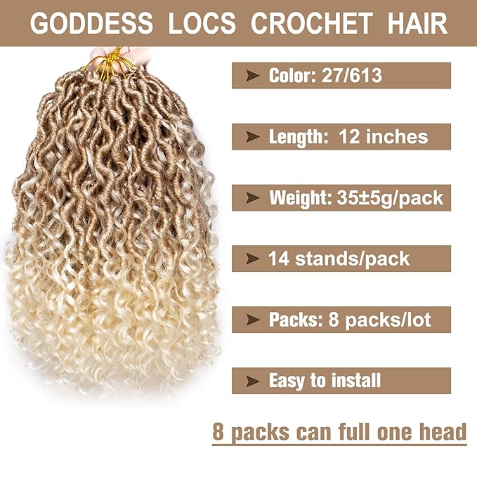 - 【Product Material】Our Pre-looped Goddess Faux Locs Crochet Hair are made with synthetic fiber and are natural looking and lightweight to make the most suitable protective styling.This Goddess Hair is naturally full,cute and pretty.