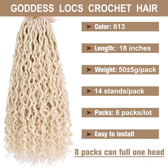 - 【Product Material】Our Pre-looped Goddess Faux Locs Crochet Hair are made with synthetic fiber and are natural-looking and lightweight to make the most suitable protective styling.This Goddess Hair is naturally full,cute and pretty.