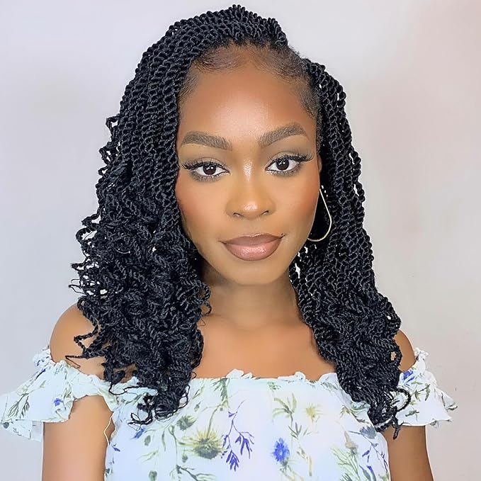 Leeven 10 Inch Wavy Senegalese Twist Crochet Hair with Curly Ends 8 Packs Black Short Pre Looped Crochet Braids Small Hanava Twist Synthetic Middle Crochet Twist for Women Girl Kids