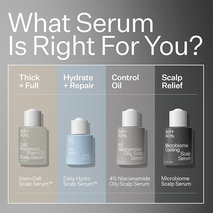 ACT+ ACRE Microbiome Cooling Scalp Serum - Instant Relief for Dry Itchy Scalp & Loose Flakes - Peppermint Oil & Amino Acid for Scalp Balance - Natural, Vegan, Paraben-Free Formula - 2.2 fl oz