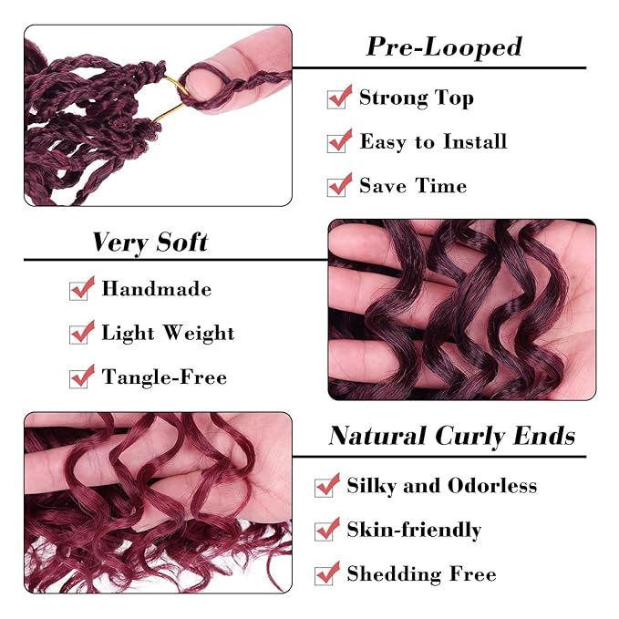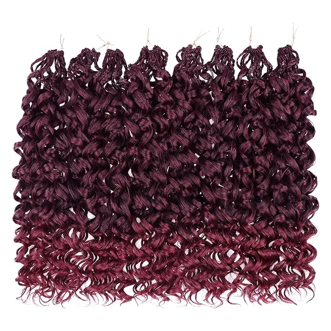 Leeven Curly Crochet Hair - 10 Inch, 8 Packs, Burgundy Gogo Curl, Ocean Wave, Ombre Red, Deep Twist, Bohemian Box Braids, Synthetic Water Wave Braiding Hair for Women