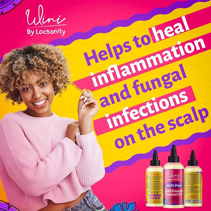 Locsanity Wini Pure 100% Cold Pressed Coconut Oil for Hair and Skin | Non-GMO | Unscented - 4 fl oz: Moisturizing Oil for Hair Care, Skin Hydration, Nail Care & Relaxing Massage