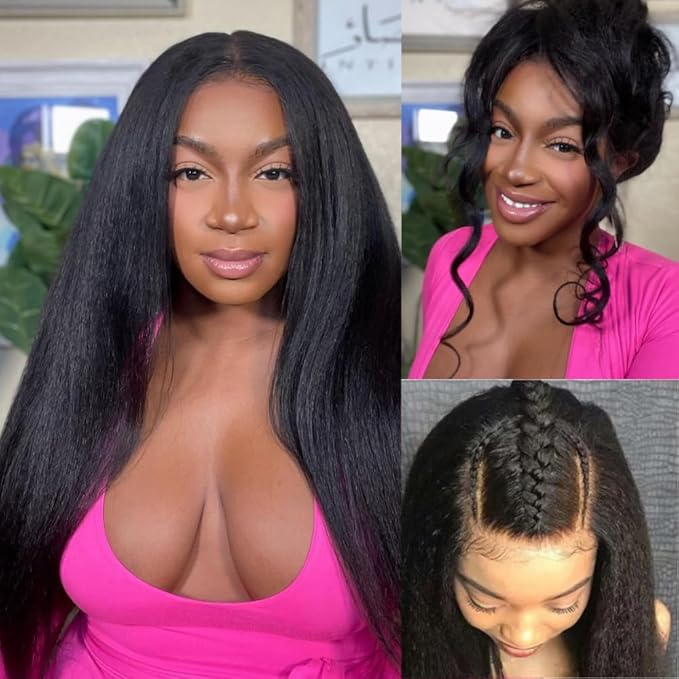 - Yaki Human Hair U Part Wig: Upgrade Kinky Straight U Part Wig, No Lace No Glue, 1x4 Inch Small Leave-Out, Matches The Roots Of Your Hair, Like Hair Coming Out Of The Scalp, It Blends Beautifully With Your Hair.
