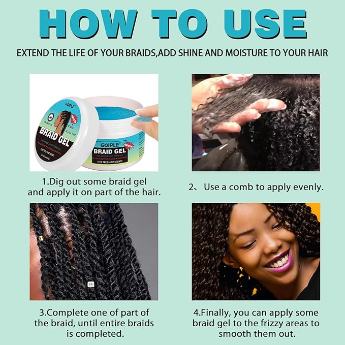 - 【Moisturizing Braid Gel】This firm hold braiding gel will perfect your braids, smooth out edges and frizz, and make your braids look smoother. It's super long-lasting, so your beauty will last longer!