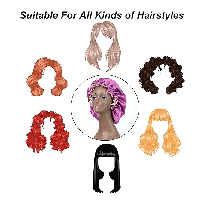 - 【Silky & Comfy】:Our bonnet is made of high-quality silky spandex satin fabric, super soft and smooth as mulberry silk, lightweight, breathable, easy to clean, and allows you to enjoy a more comfortable sleep.Multiple colour, there is always a color that suits you!