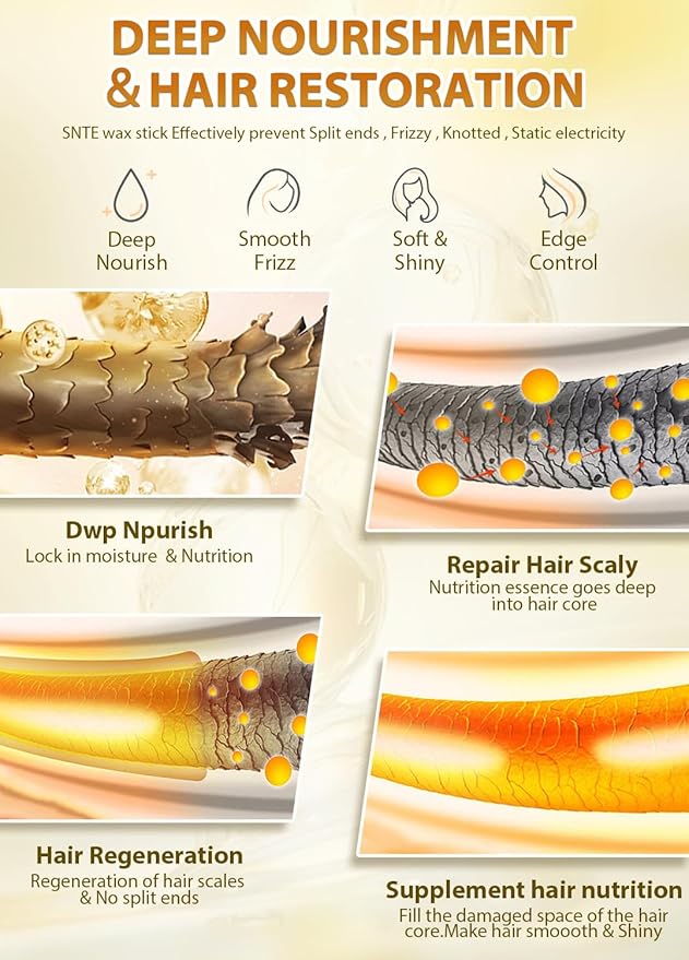 - 【Styling & Smoothing Frizz】Quickly tame flyaway hair. SNTE Hair Wax Stick is rich in castor oil, which effectively smooths hair frizz, edge control... You can directly use the hair wax stick to apply it on the area of your hair that needs to be controlled.